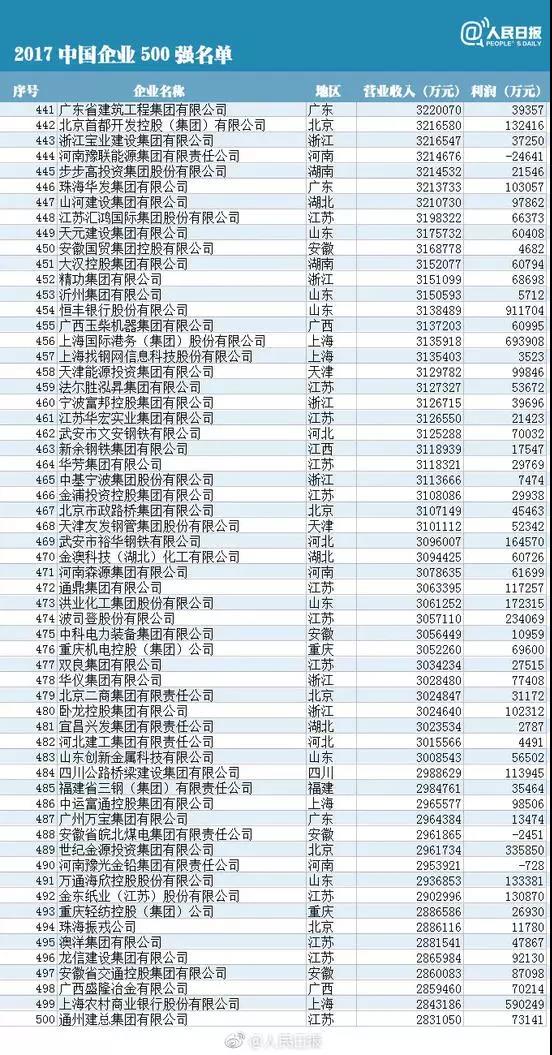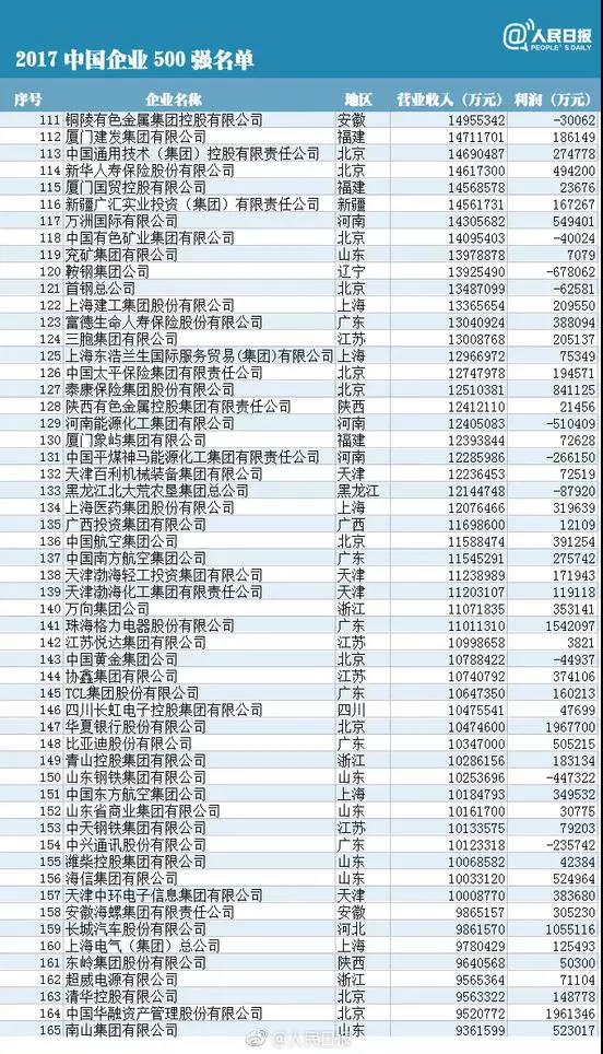 10, the China Enterprise Association and the China Entrepreneur Association issued the sixteenth list of "top 500 Chinese enterprises" for the first time. Among the top 500 Chinese enterprises, the national Power Grid Corp, CNPC and China Petroleum and chemical group ranked top 2017. So, what about the top 500? The reporter combs for you.